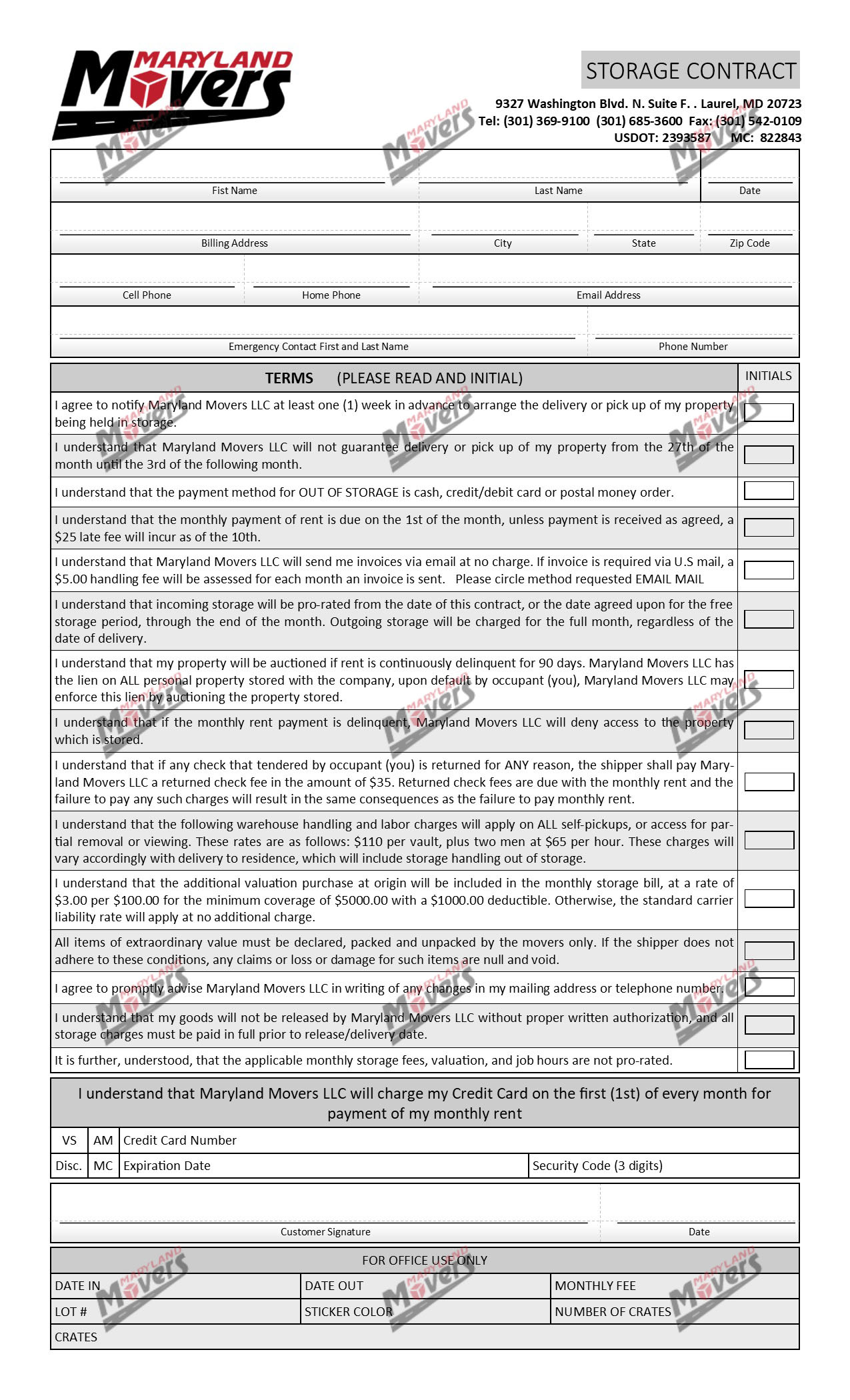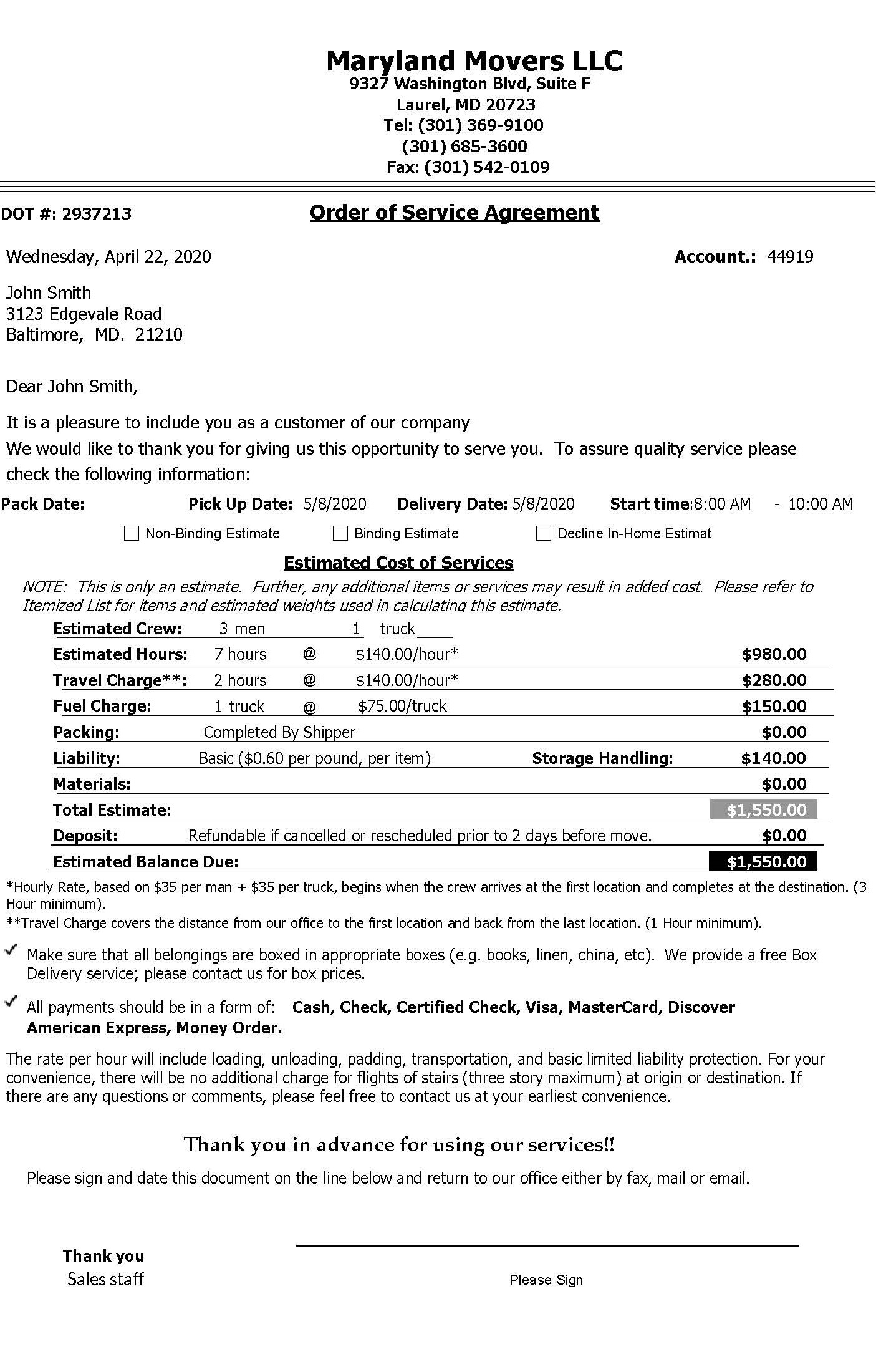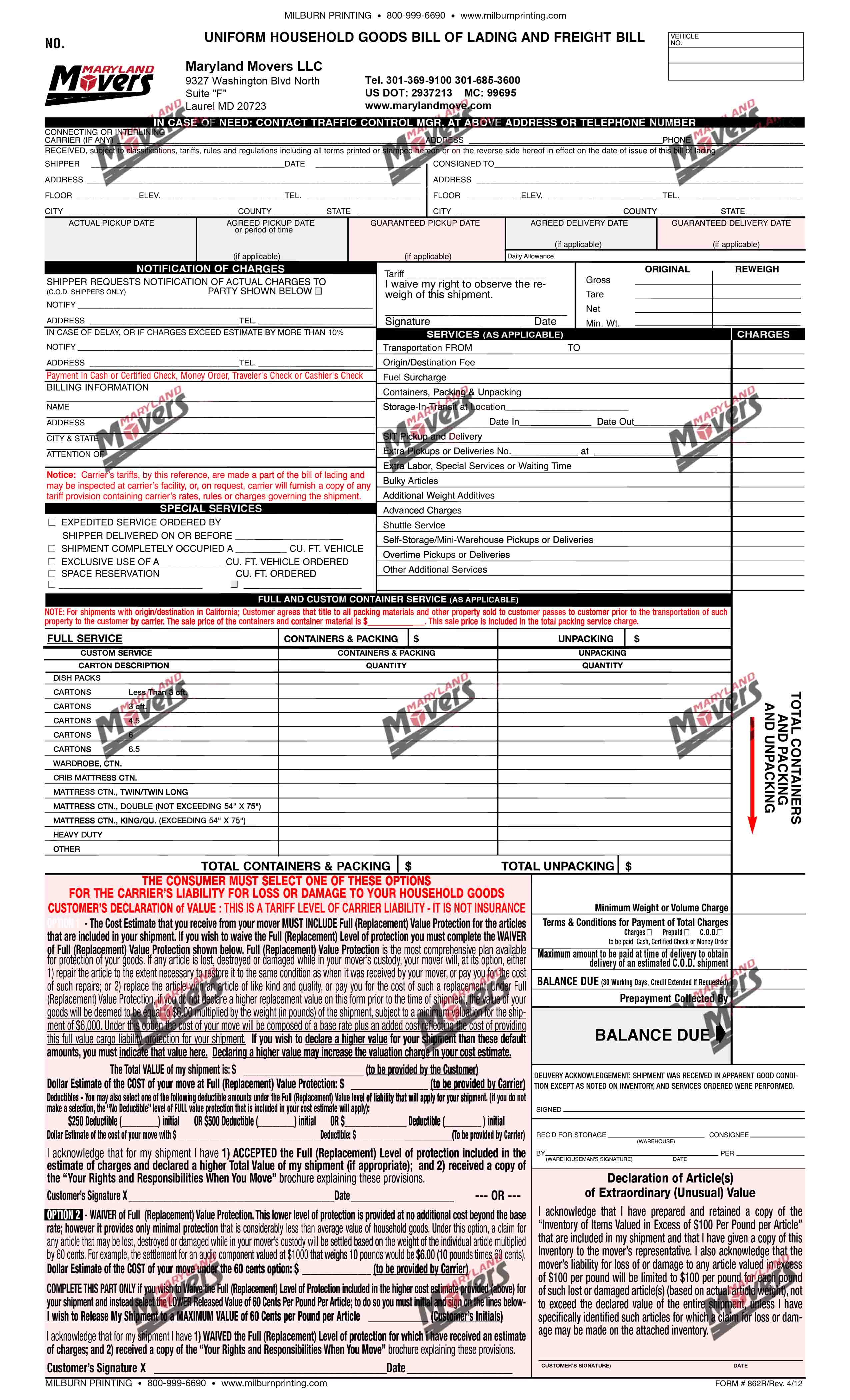 Here at Maryland Movers we know you have questions and concerns about the documents you will need to sign for your move. From the initial Service Agreement to our Local or Long Distance Contracts.